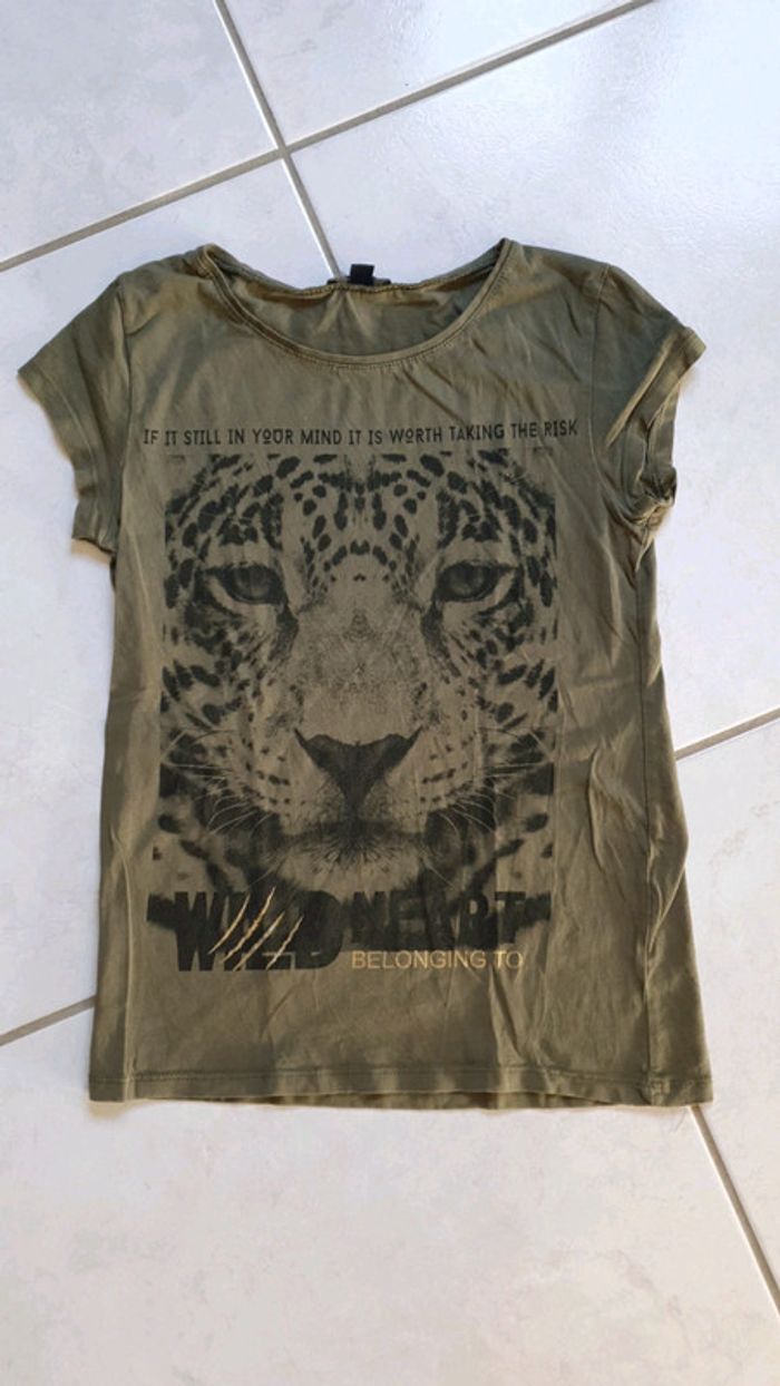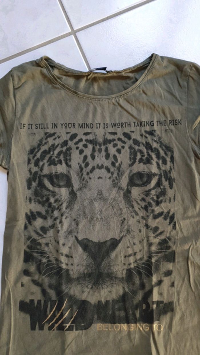 Tee shirt manches courtes fille kaki Motif guépard Wild Heart La couleur n'est pas passée c'est dû à la photo ! N'hésitez pas à aller voir mes autres ventes classées par #eloio #eloiokiabi #eloiofille12ans #eloiofilleado