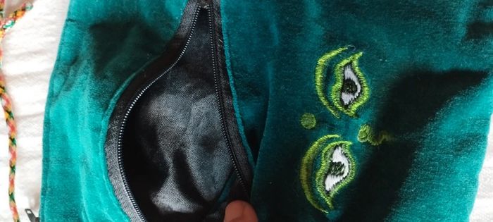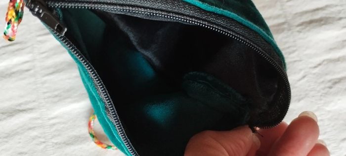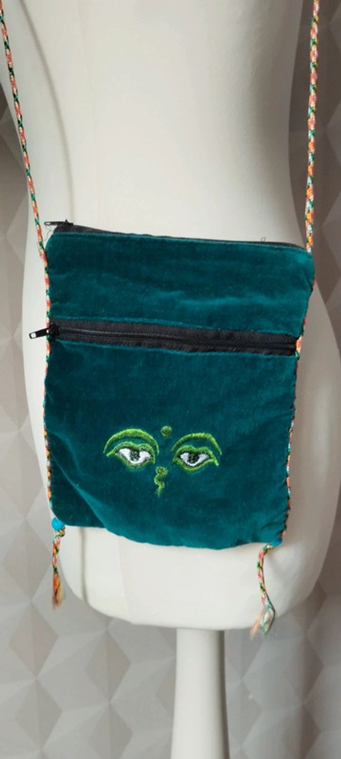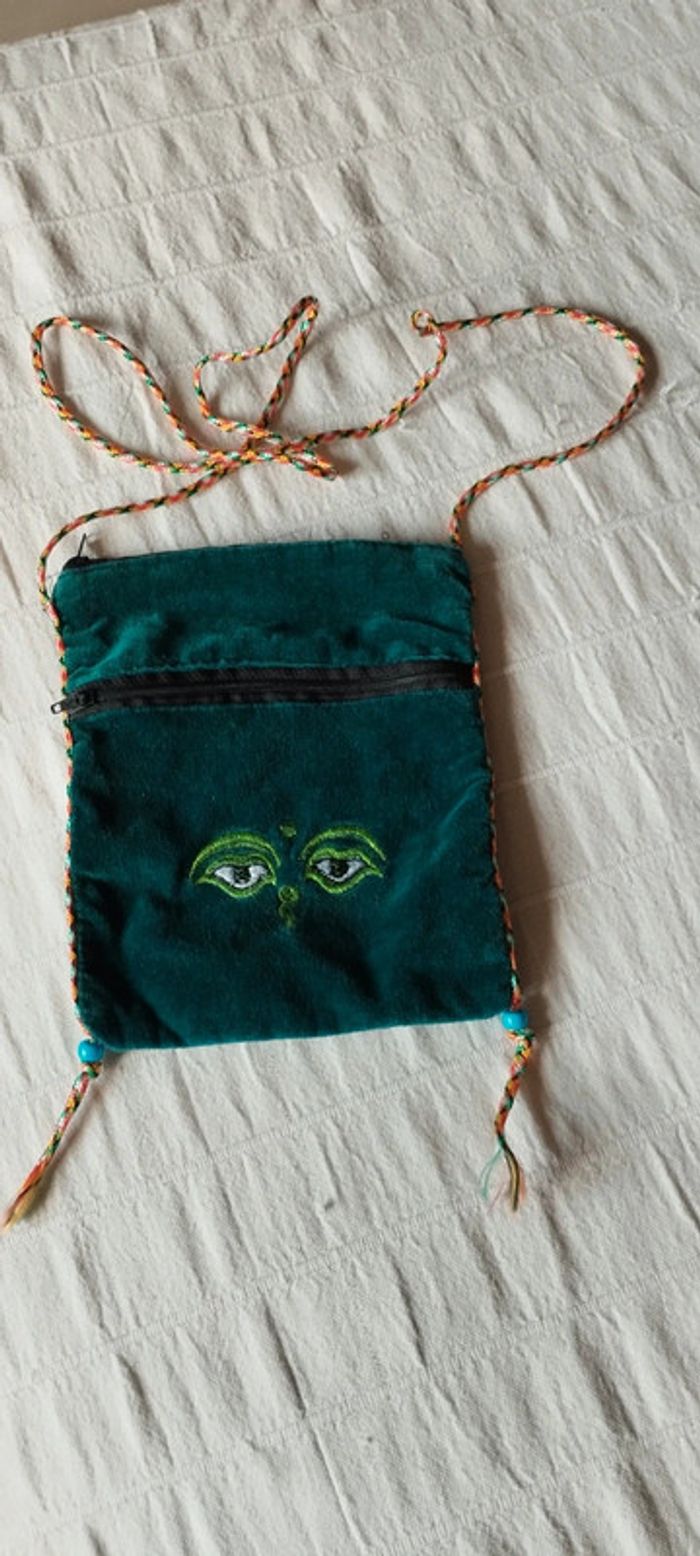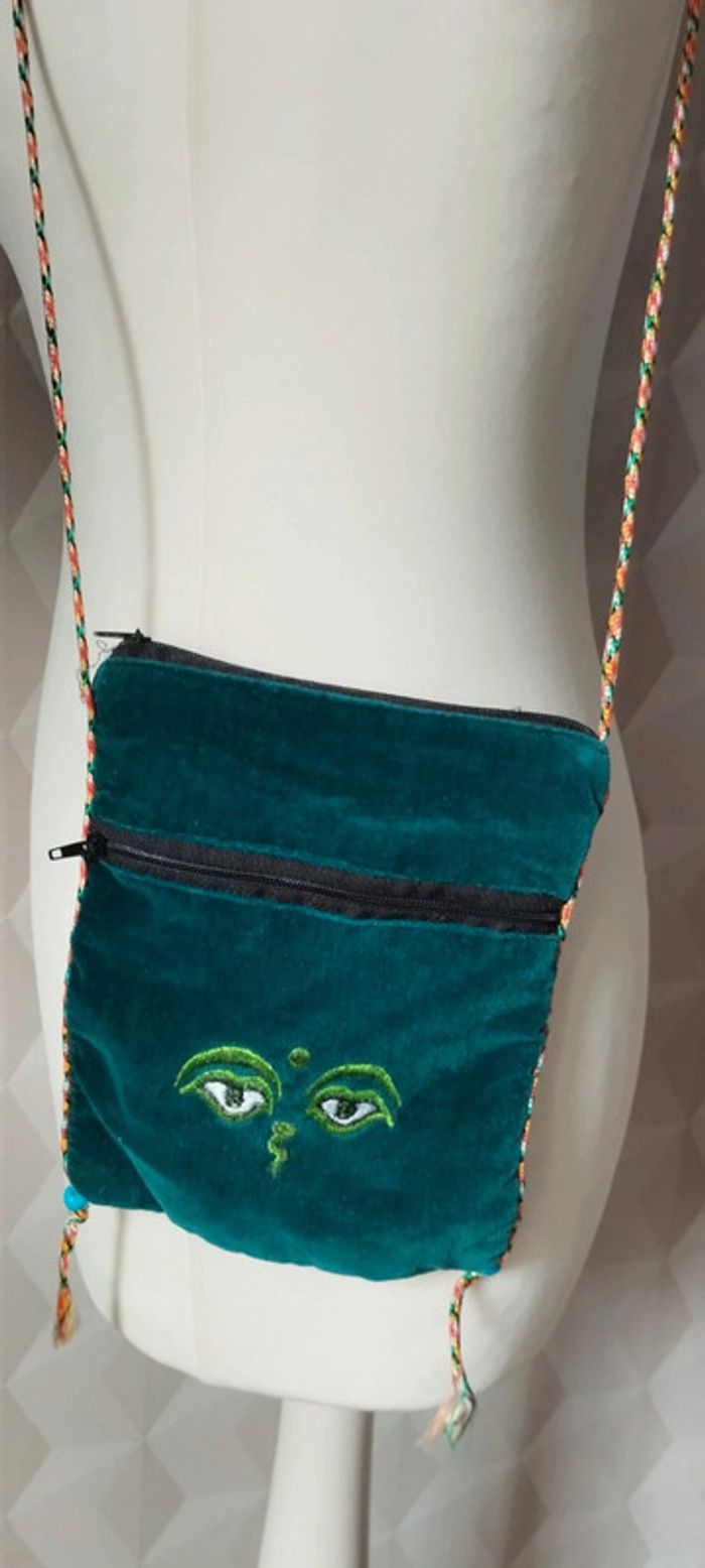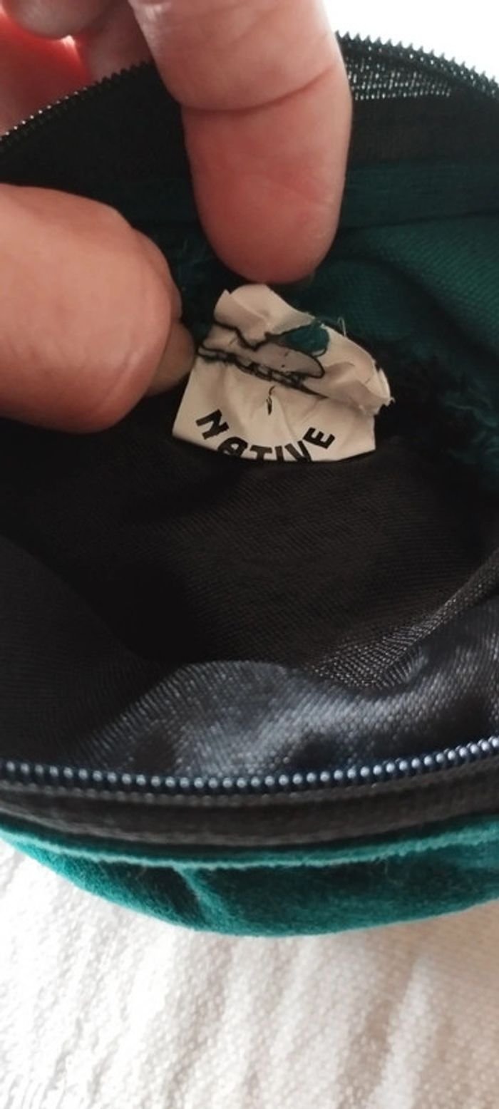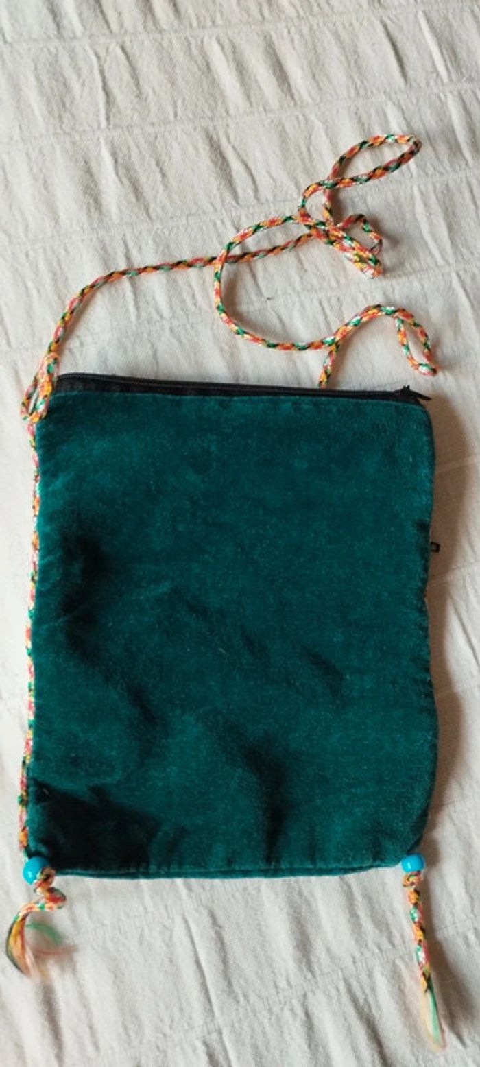 Pochette bandoulière 100 % velours Deux poches avec fermeture éclair Coloris vert, cordon coloré Marque Native Etat neuf. #linejacpochettesac