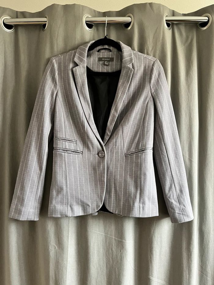 Blazer ajusté gris rayé taille 34 - photo numéro 1