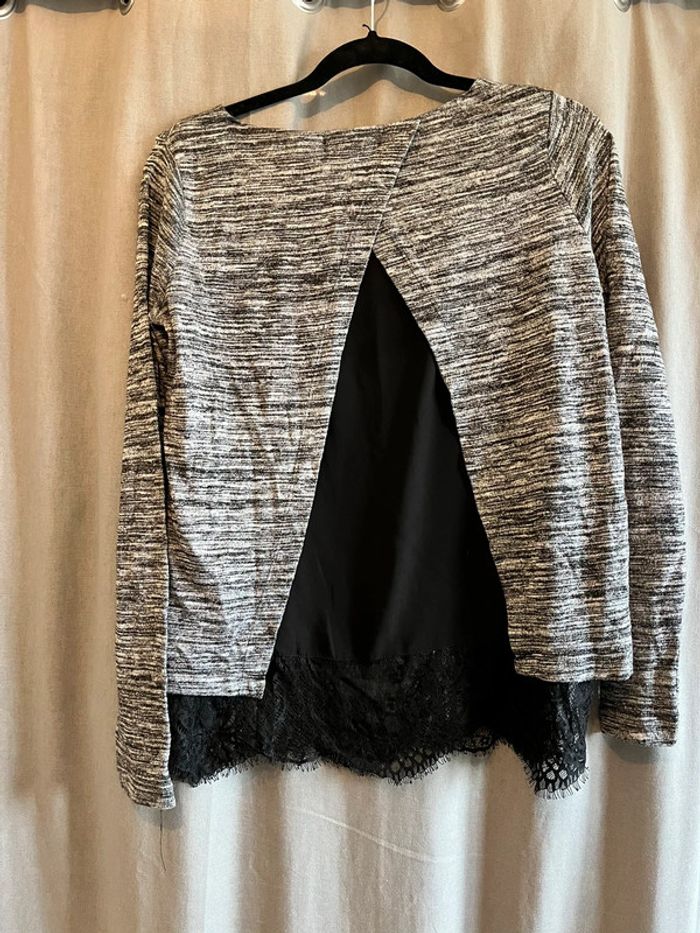pull gris chiné et chemise noir taille xs - photo numéro 1