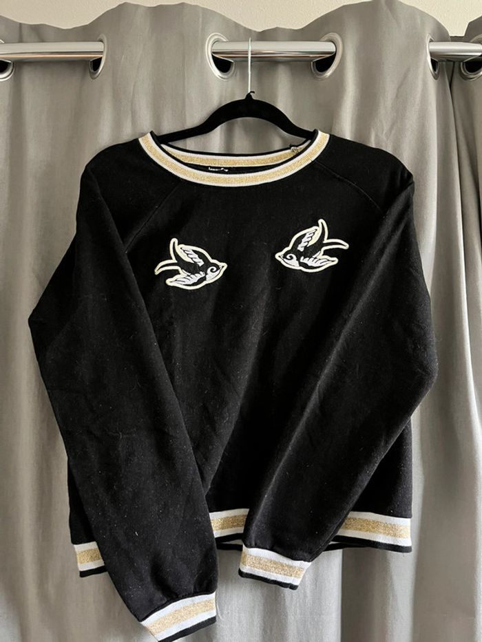Sweat-shirt noir et brodé oiseaux taille S - photo numéro 1