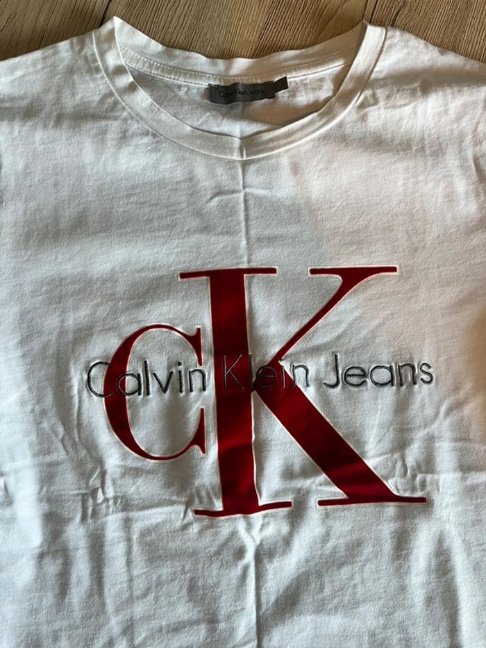 T-shirt Calvin Klein Blanc motif bordeaux taille s - photo numéro 2