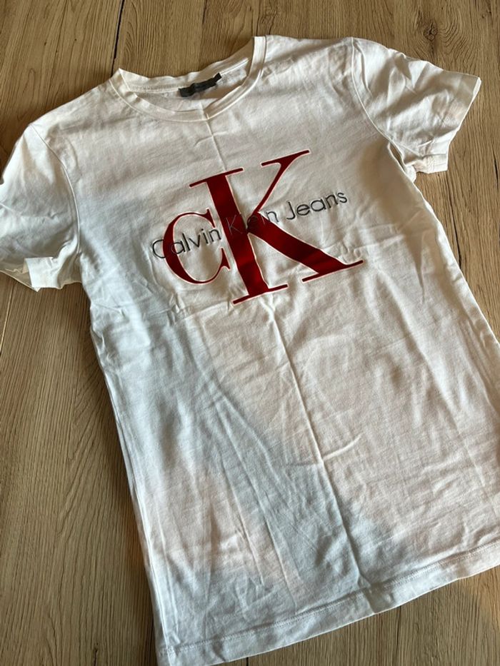 T-shirt Calvin Klein Blanc motif bordeaux taille s - photo numéro 1
