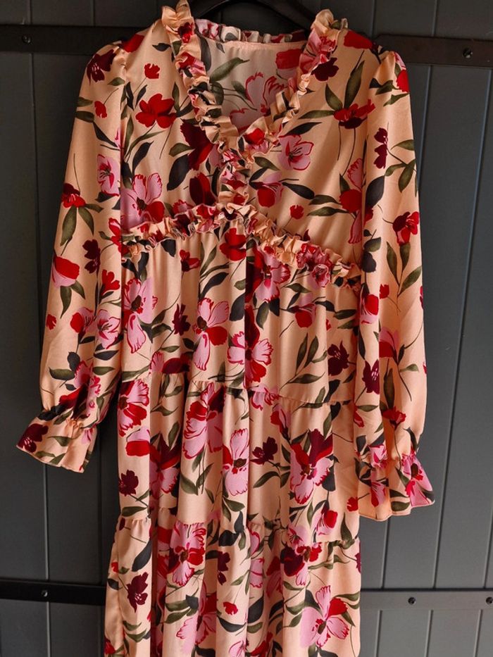 Robe longue couleur saumon motif floral