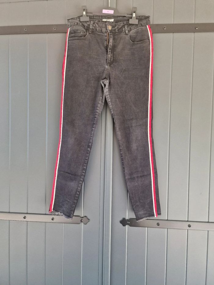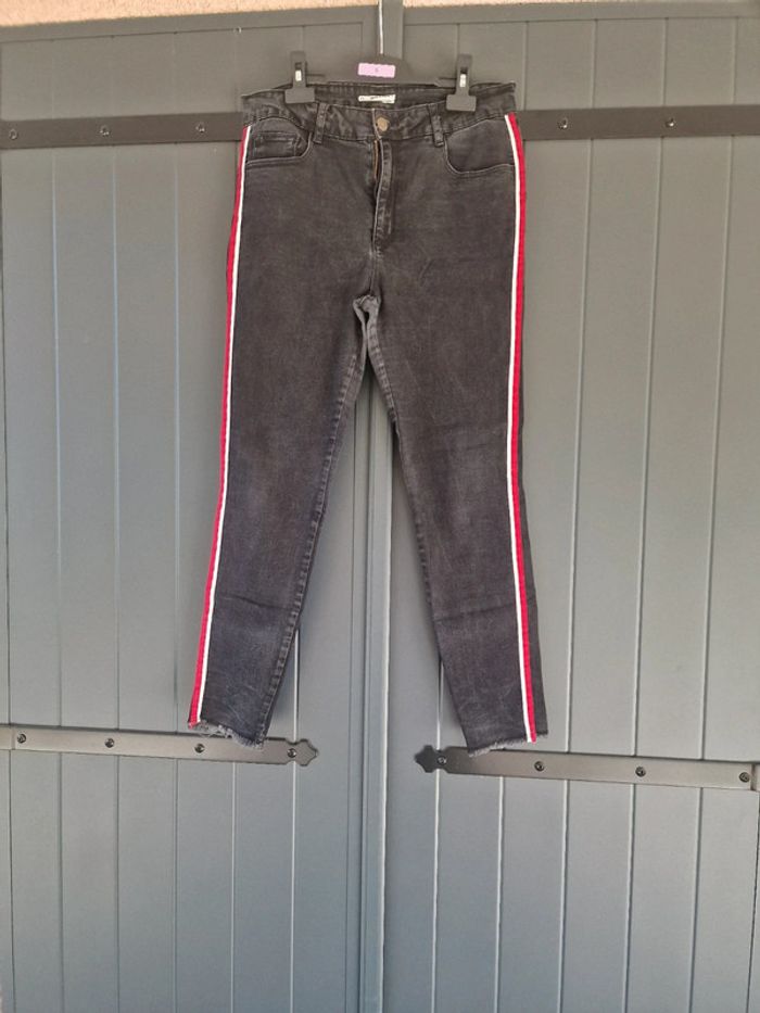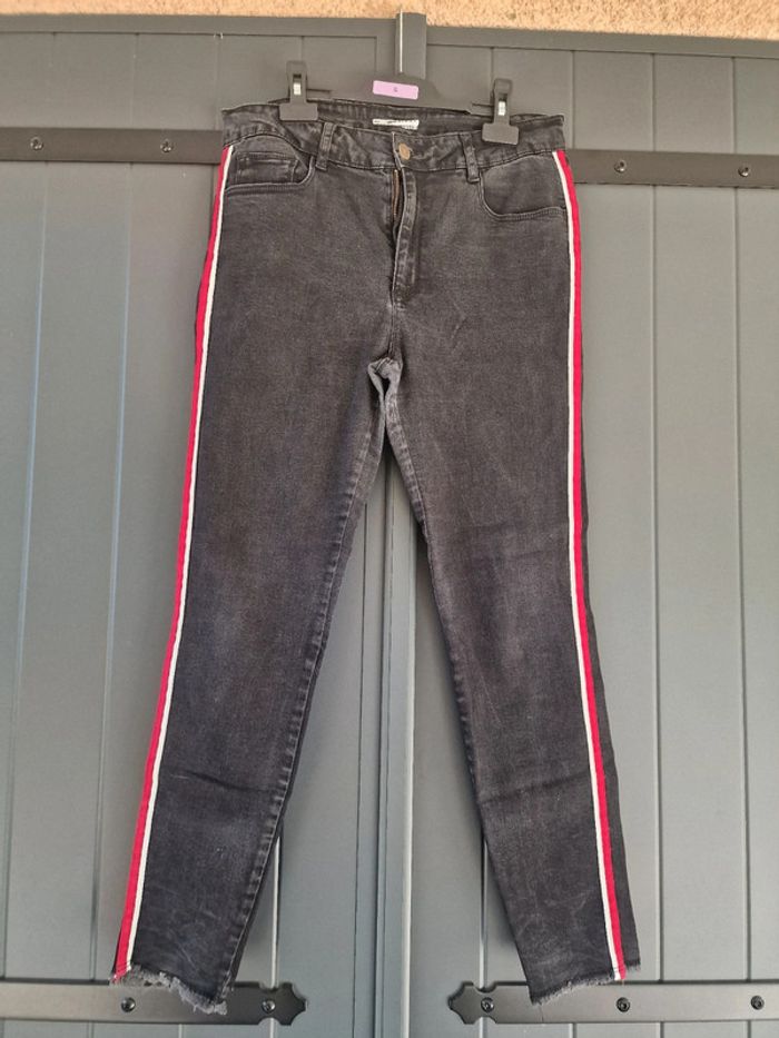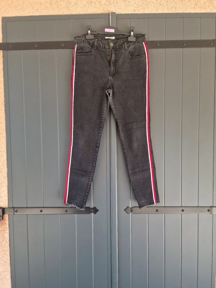 Jeans noir skinny avec rayures blanches et rouges - photo numéro 1