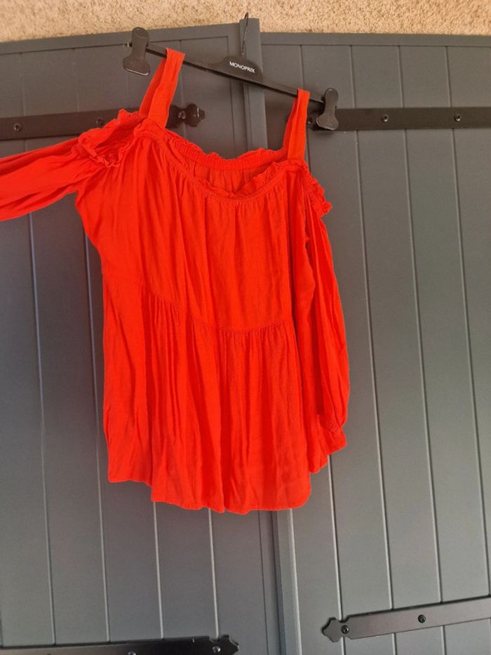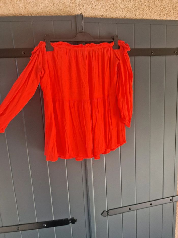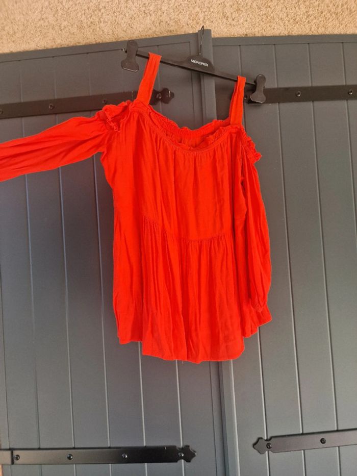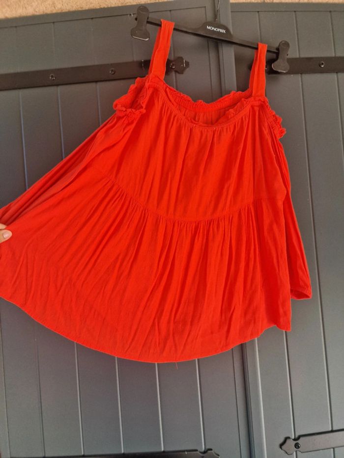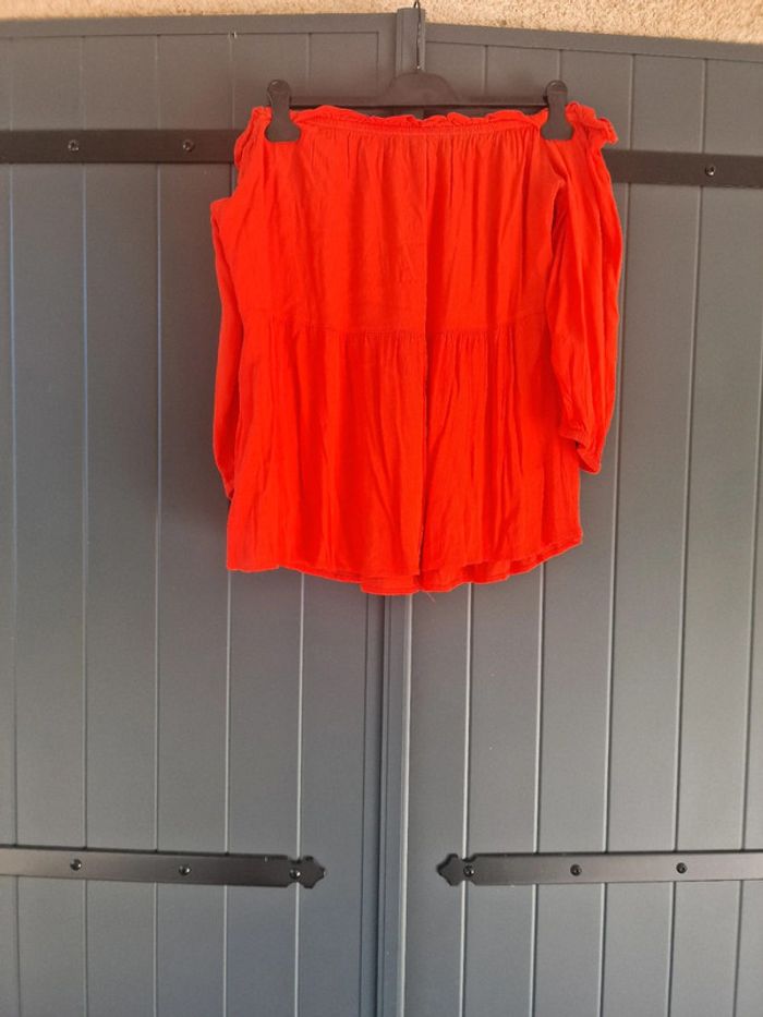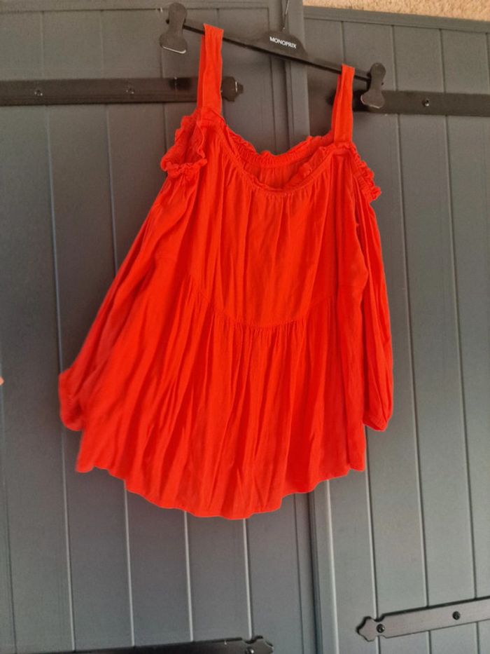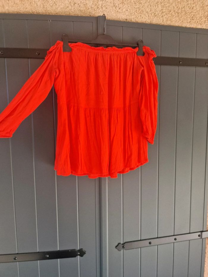 Ancienne collection promod En tres bon etat Belle matière et beau coloris En très bon etat Top épaule dénudé ou avec bretelles Couleur rouge orange Taille XXL