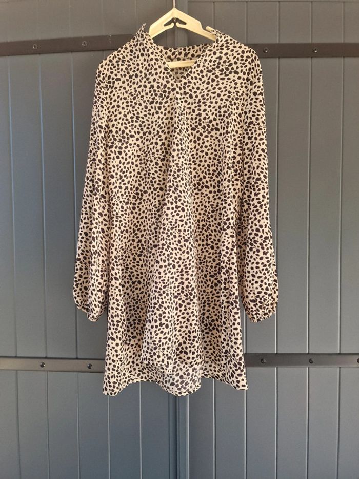 Robe droite beige a imprimé animal - photo numéro 2