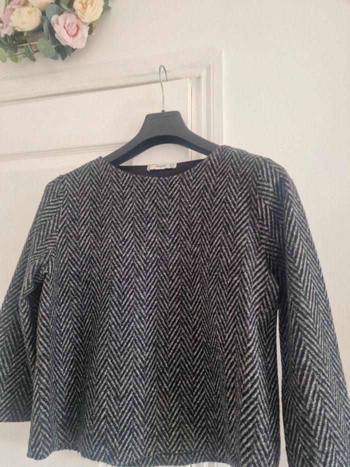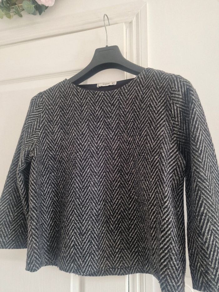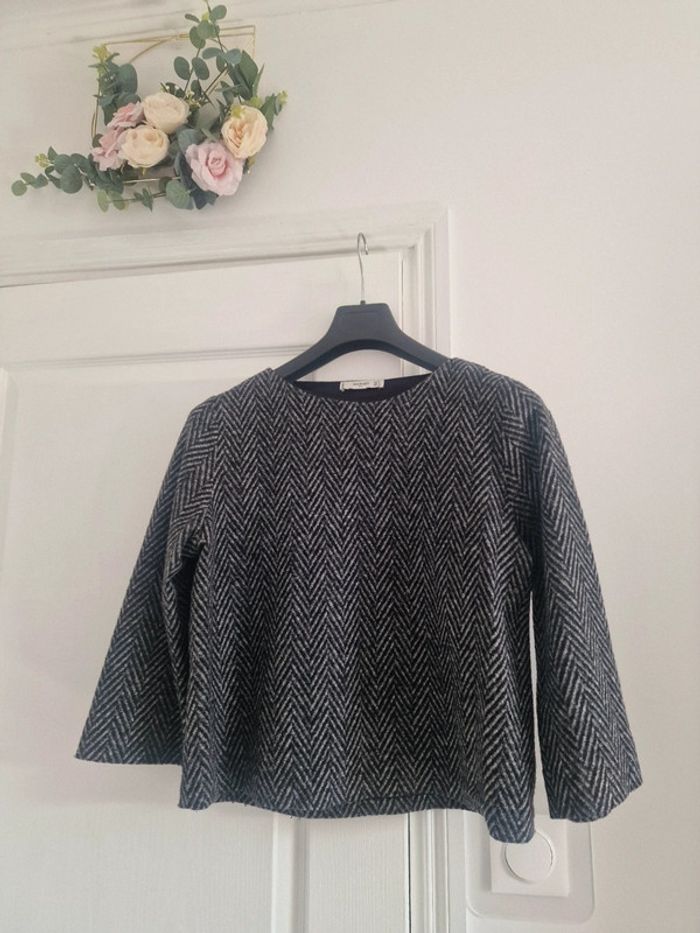 Haut épais gris et noir manches longues mango - photo numéro 2