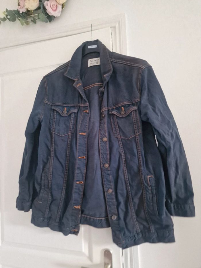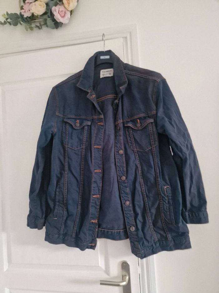 Veste en jeans foncé mi longue pull&bear - photo numéro 1