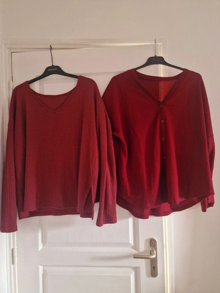 Lot top maille gaufrée couleur bordeaux et lie de vin - photo numéro 1