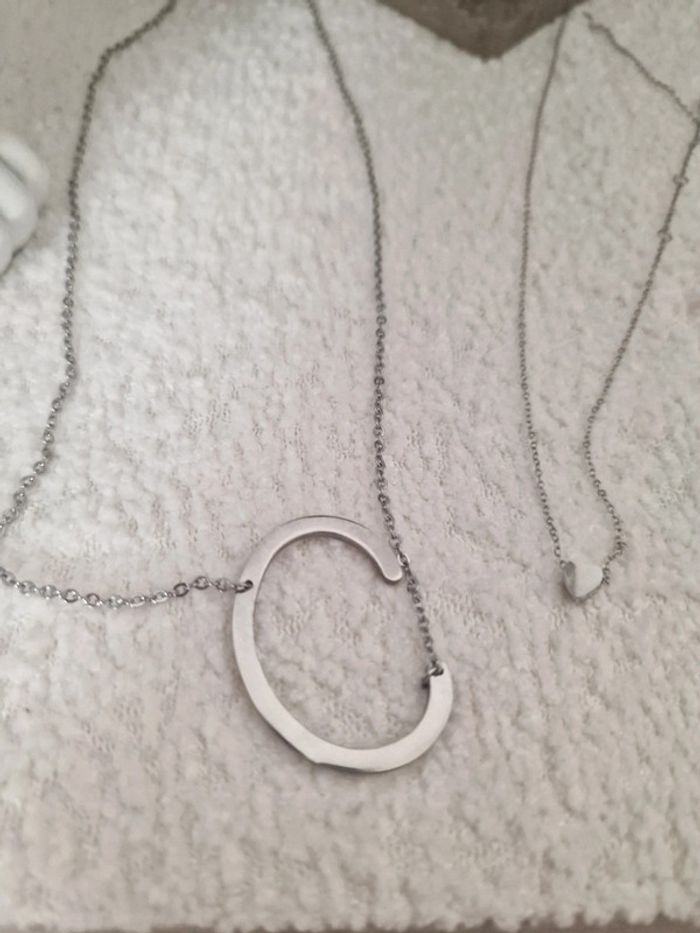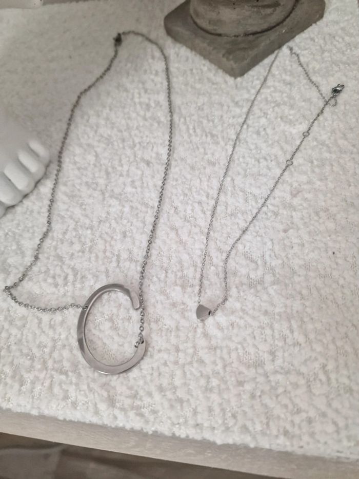 Deux colliers Motif lettre C Motif minimaliste cœur 5 euros l'unité En acier inoxydable