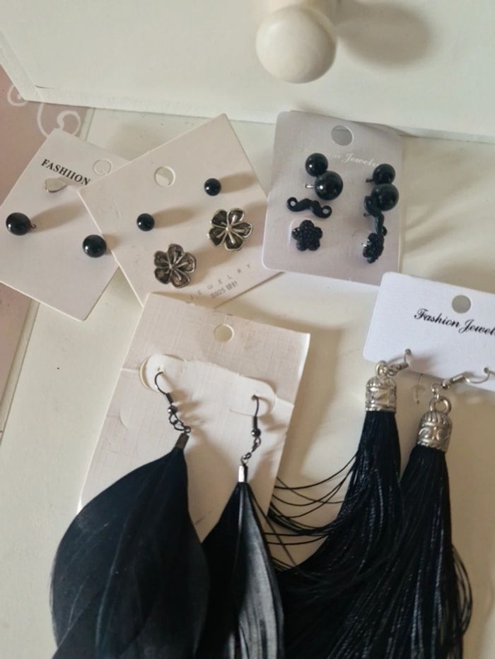 Lot boucles d'oreilles noires - photo numéro 2