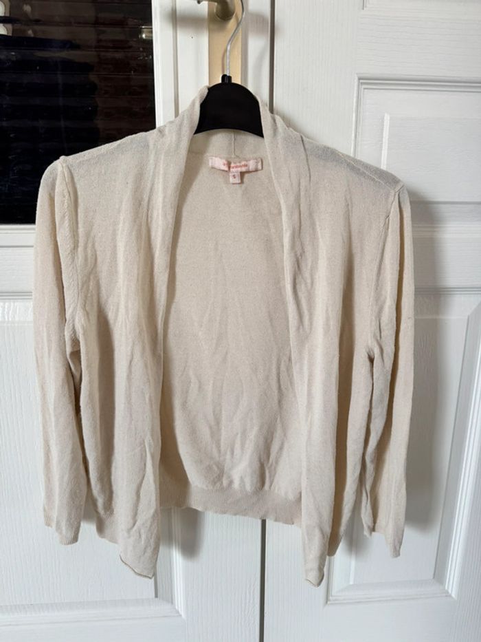 Lot de 1 gilets et 3 pulls fins, idéal pour la mi-saison : 🔸 un gilet couleur crème, bon état, aucune tâche, la fée maraboutée, taille S 🔸 un pull noir, à petites mailles en parfait état, Iodena, taille S 🔸 un pull turquoise avec formes géométriques brillantes en très bon état, taille S 🔸 un pull bleu canard, la fée maraboutée, taille XS mais convient également pour un taille S (puisque c’est ma taille) 💡 n’hésitez pas à visiter mon dressing, tout est classé par catégorie dans mon profil