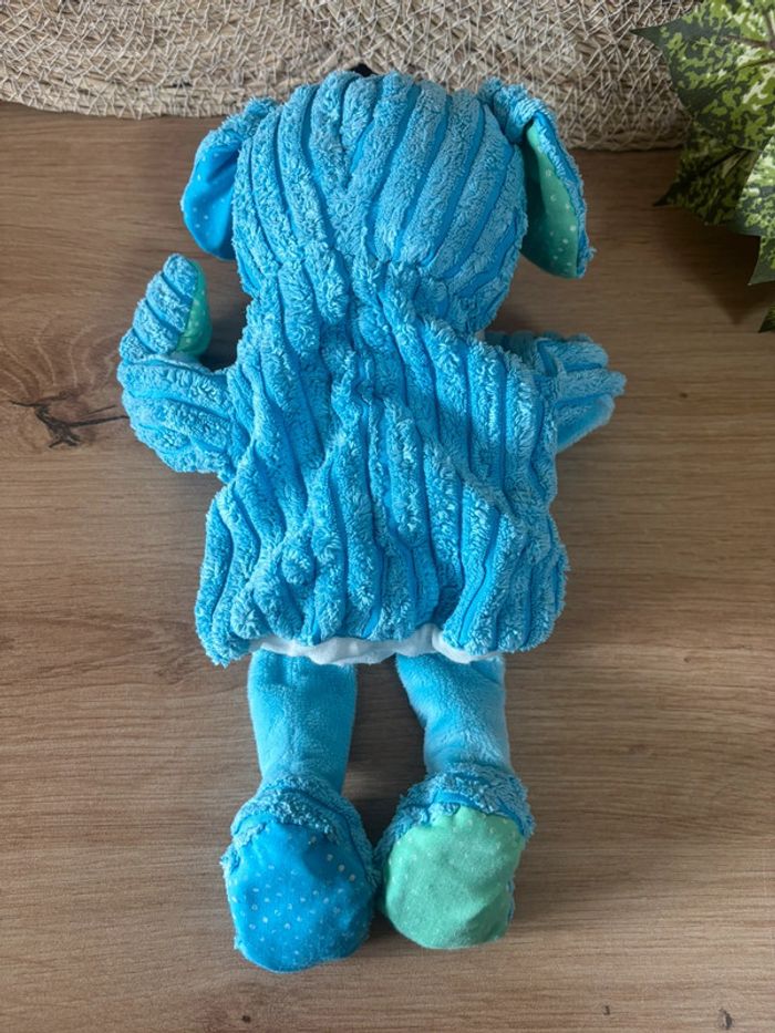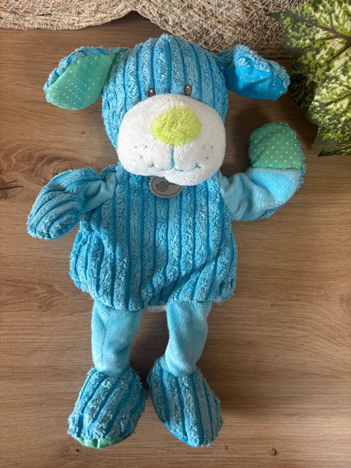 Doudou marionnette chien velours bleu vert baby nat - photo numéro 1
