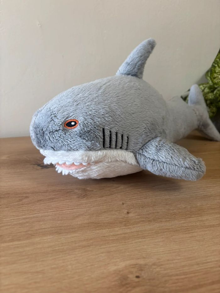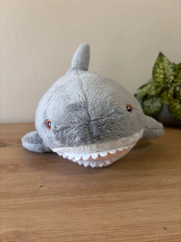 Doudou peluche requin gris blanc 35 cm - photo numéro 1