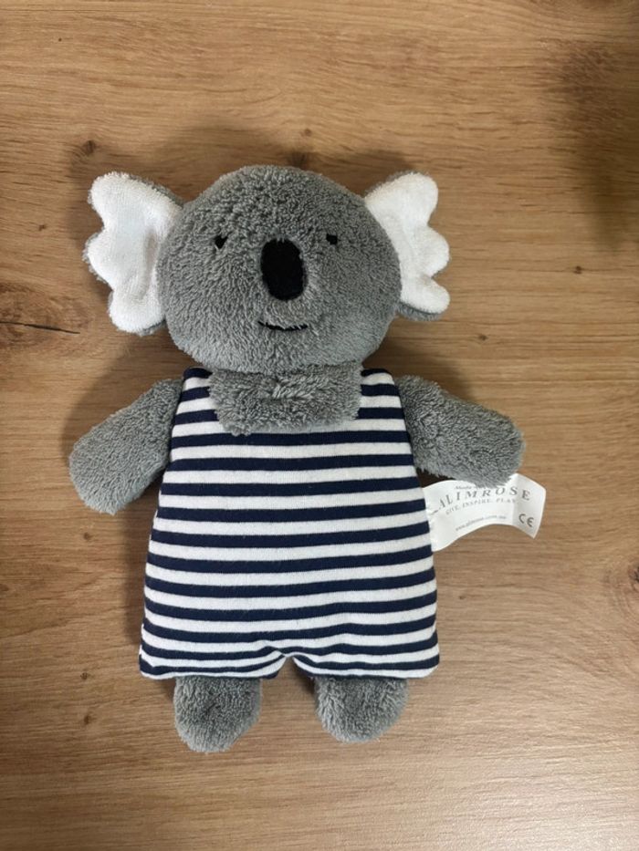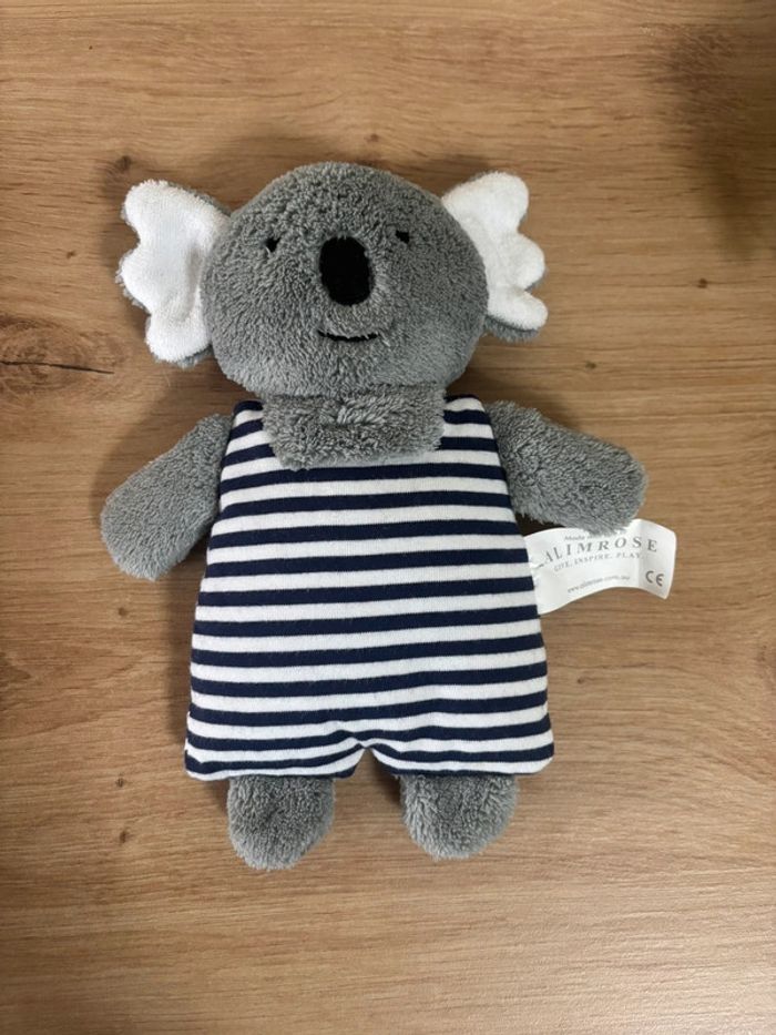 Doudou koala grelot  gris rayé bleu marine blanc alimrose - photo numéro 1