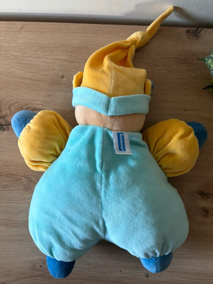 Doudou peluche ours bleu vert bonnet jaune fleur nounours - photo numéro 3