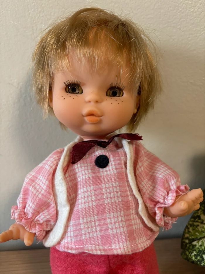 Ancienne poupée tache de rousseur vêtement feutrine famosa superbe