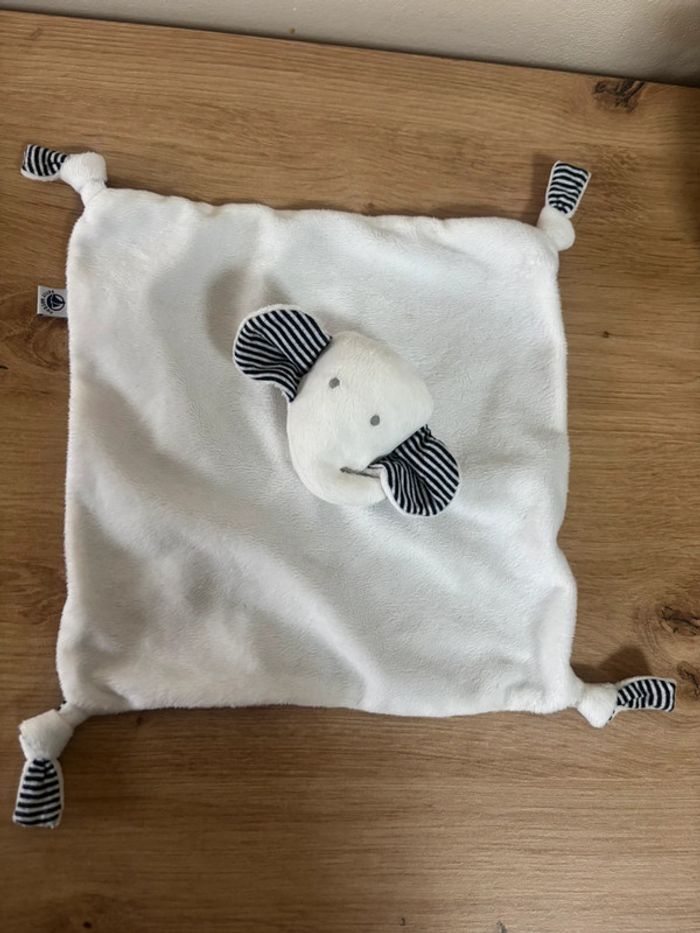 Doudou plat éléphant blanc verso rayé bleu marine petit bateau - photo numéro 1