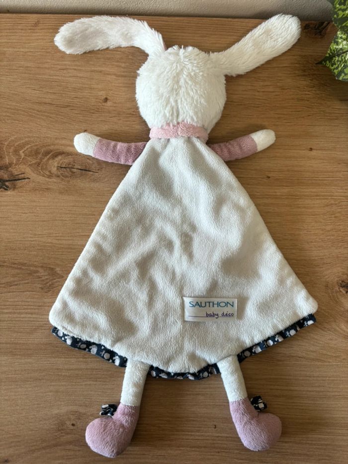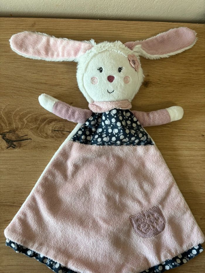 Doudou plat lapin miss chipie rose blanc fleur sauthon - photo numéro 1