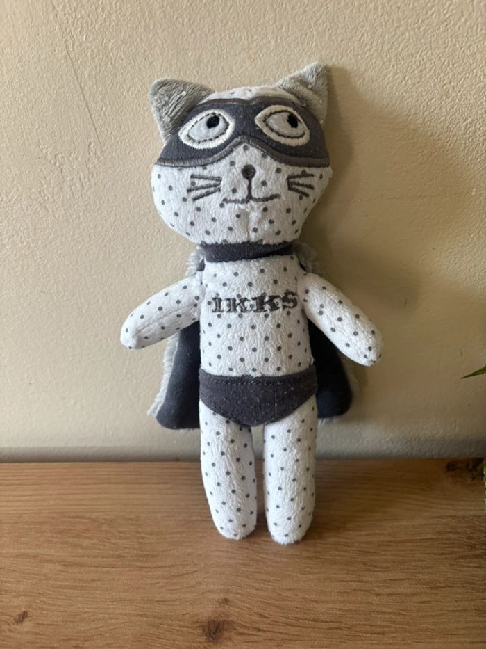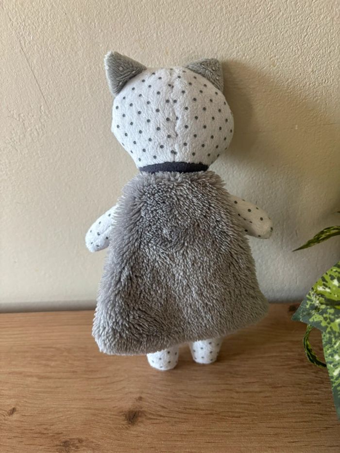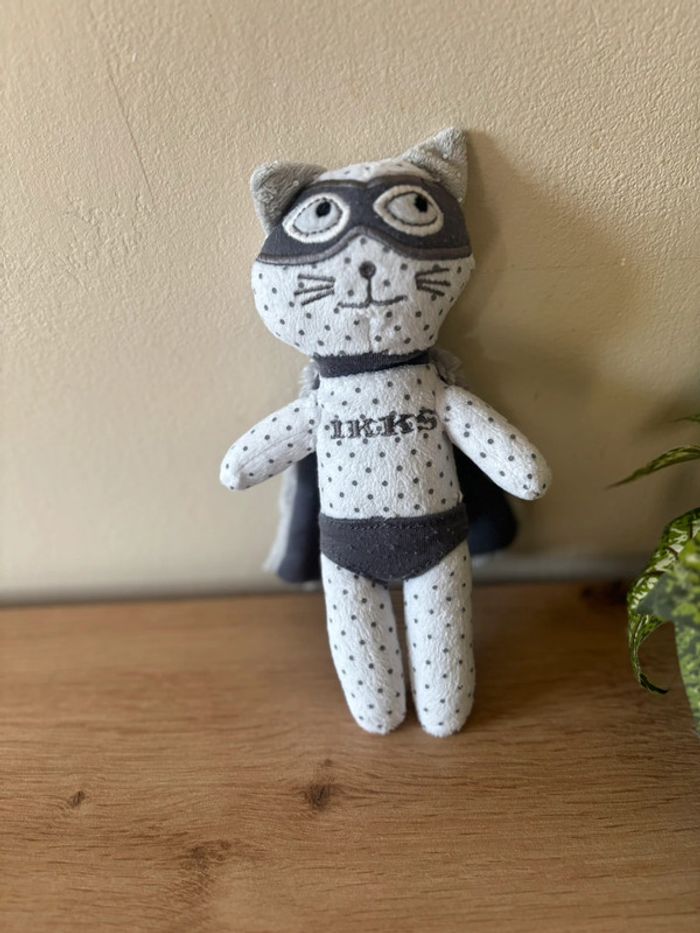 Doudou peluche chat super héros cape gris blanc pois ikks - photo numéro 1