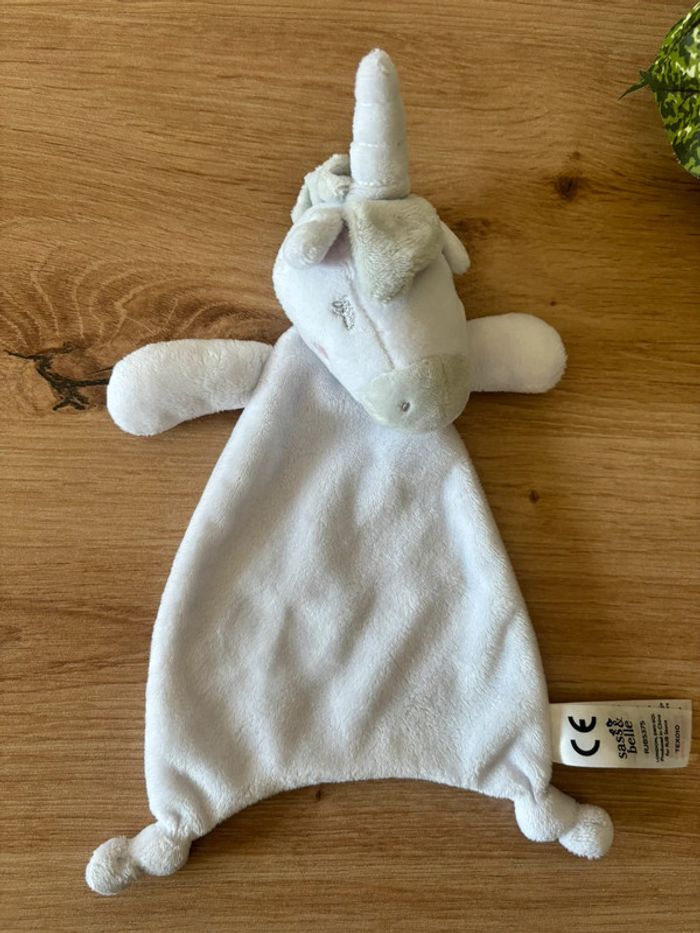Doudou plat licorne blanc gris sass & belle - photo numéro 1