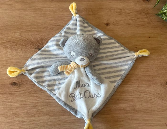 Très bon état Étiquette coupée Envoi rapide #doudouplatmonpetitourspatetripaton #doudouplatoursgrisblancjaunepatetripaton
