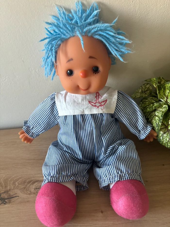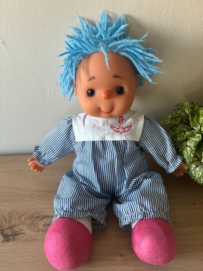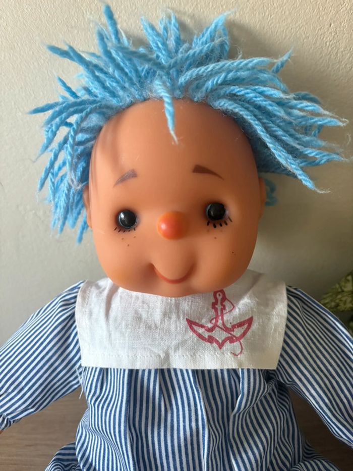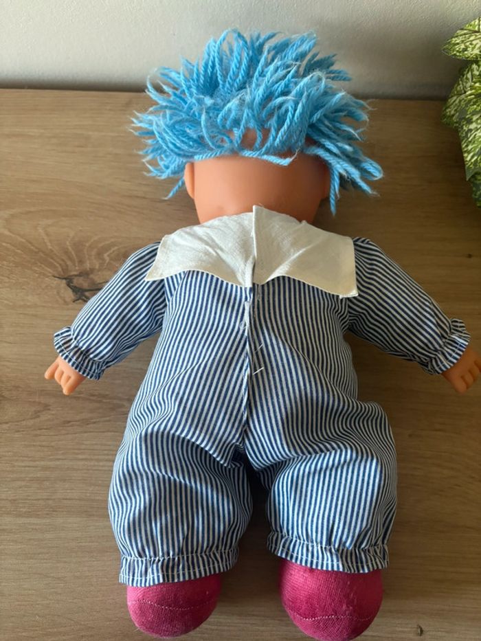 Ancienne poupée chiffon cheveux en laine bleu  vintage - photo numéro 1