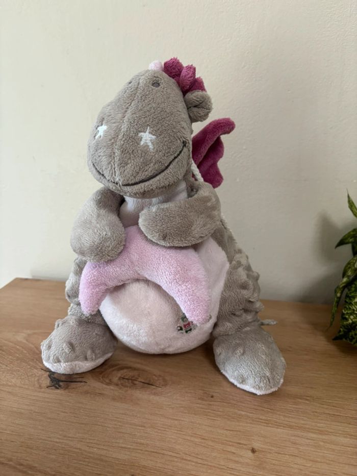 Doudou dragon gris rose lune musical noukies - photo numéro 1