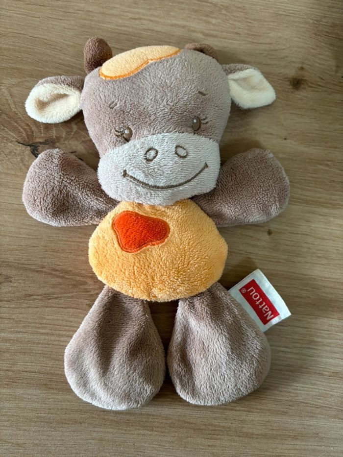 Doudou semi plat vache marron  orange nattou - photo numéro 1