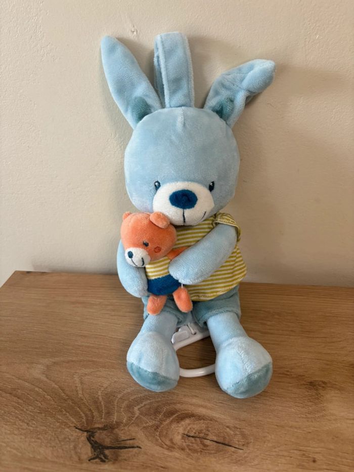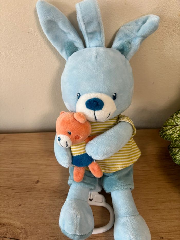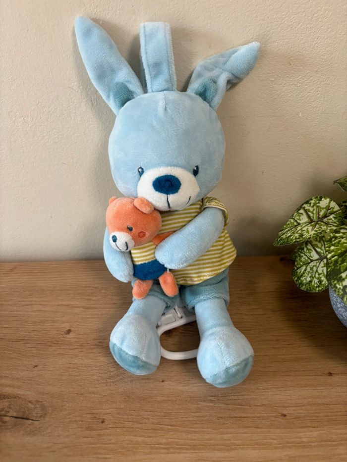 Excellent état 29 cm en comptant les oreilles Modèle musical 🎵 fonctionne parfaitement Envoi rapide #doudoulapinbleumusicalpommette #peluchelapinbleuoursmusicalpommette