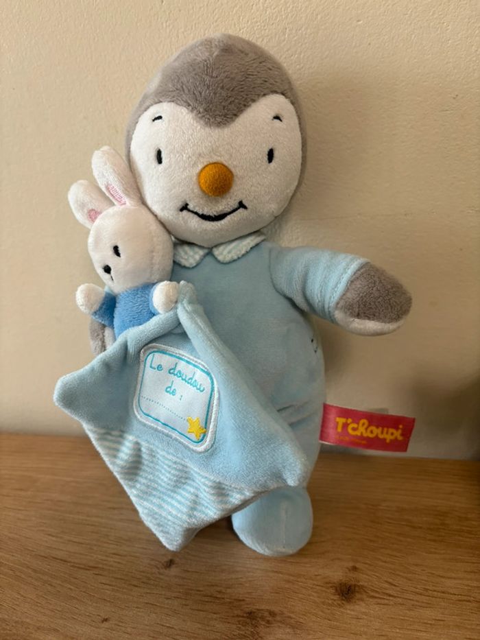 Doudou t choupi bleu avec son doudou lapin nicotoy