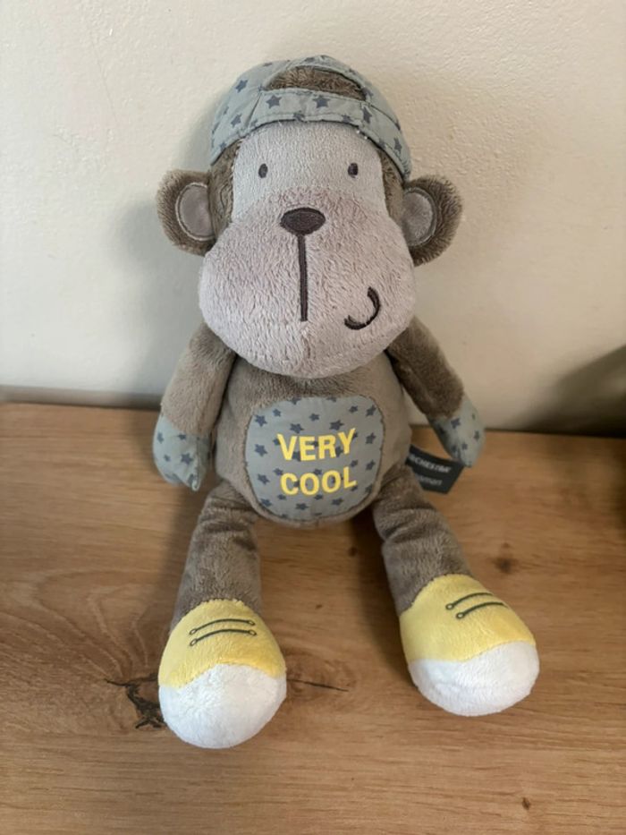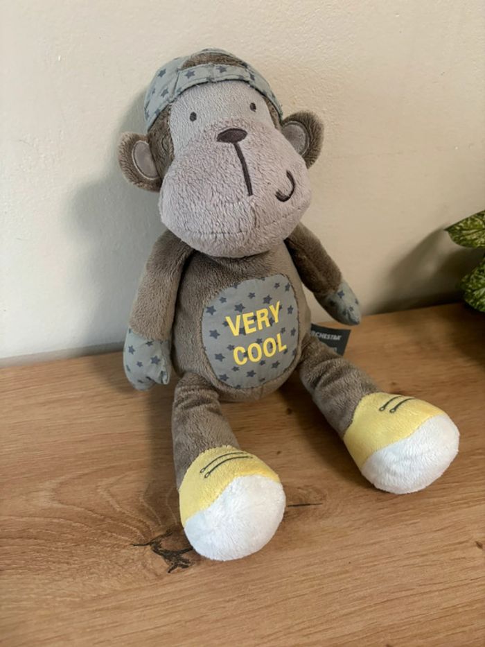Doudou peluche singe gris casquette very cool orchestra premaman