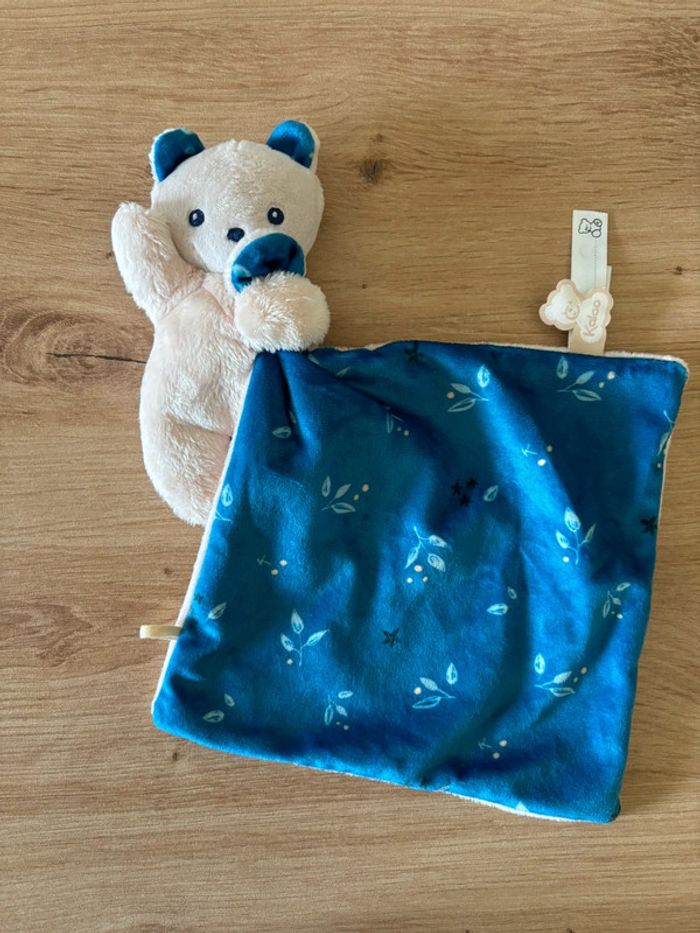 Doudou ours beige mouchoir bleu fleur kaloo neuf - photo numéro 1