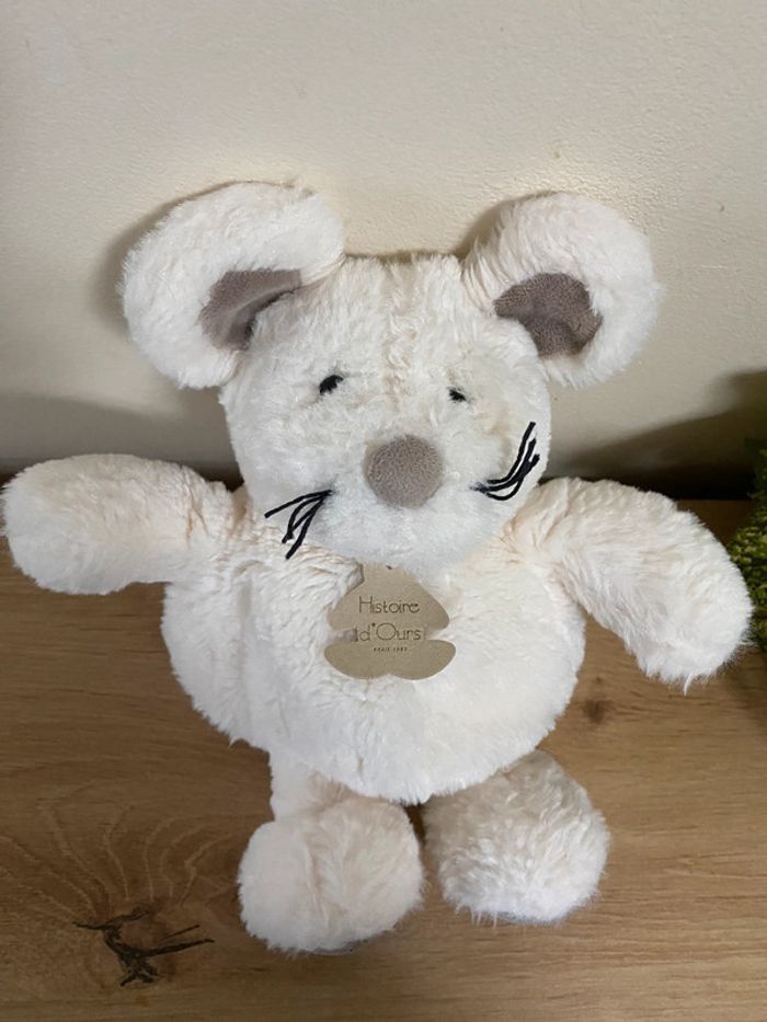 Doudou peluche souris boulidoux blanc marron histoire d ours