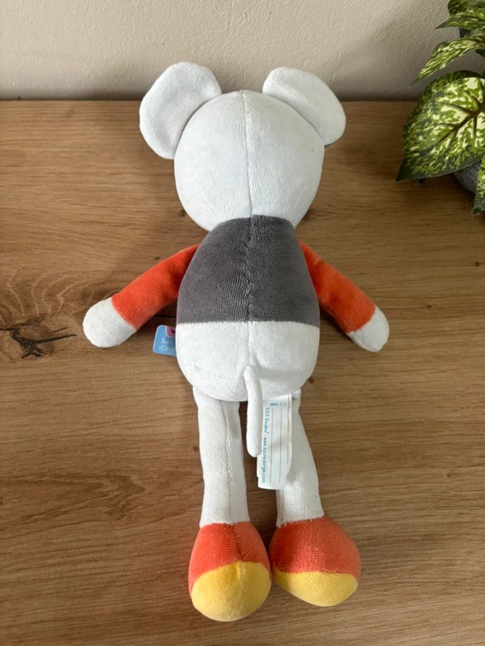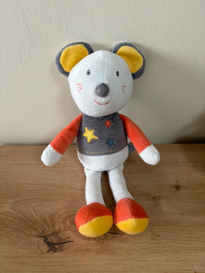 Doudou souris orange gris étoile jaune sucre d orge