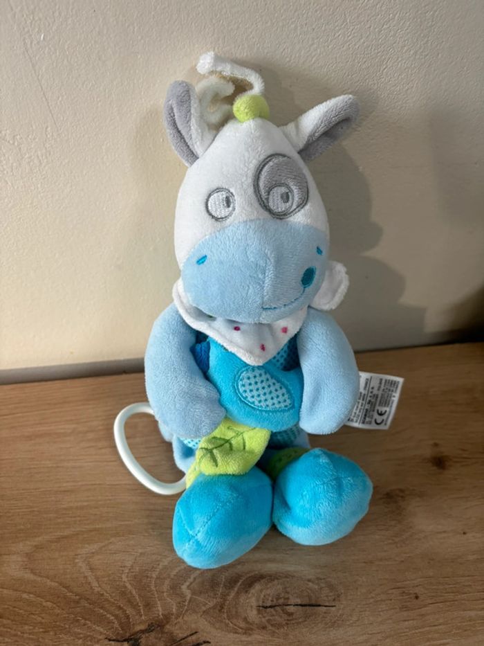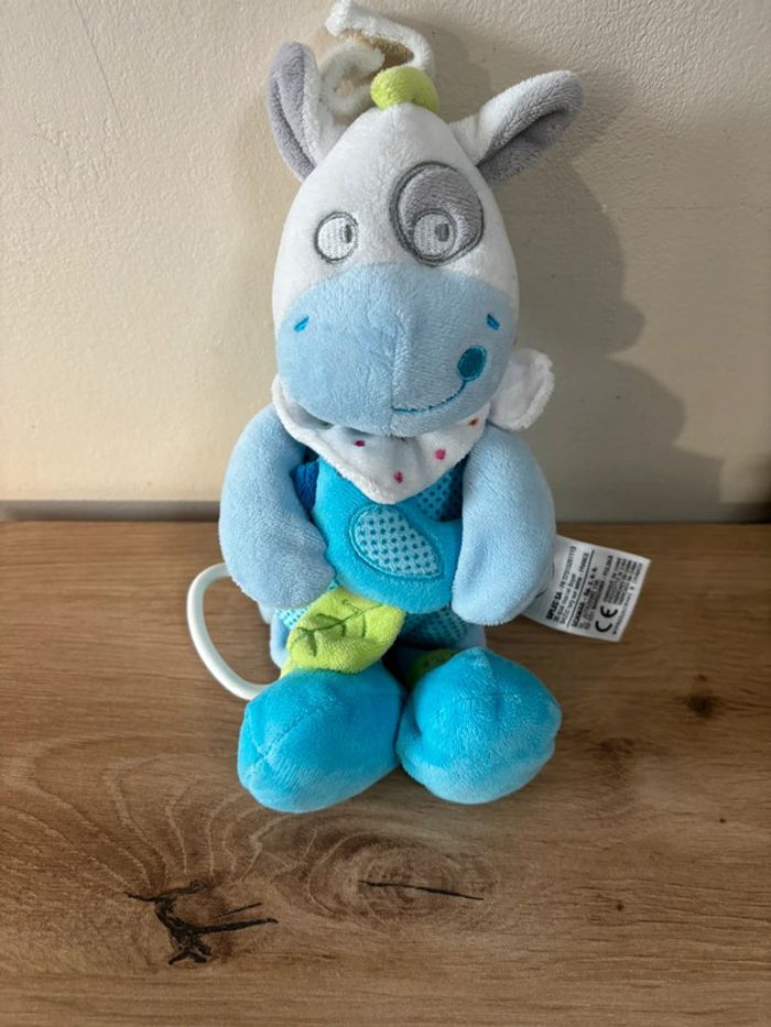 Doudou vache bleu oiseau musical mots d enfants - photo numéro 1
