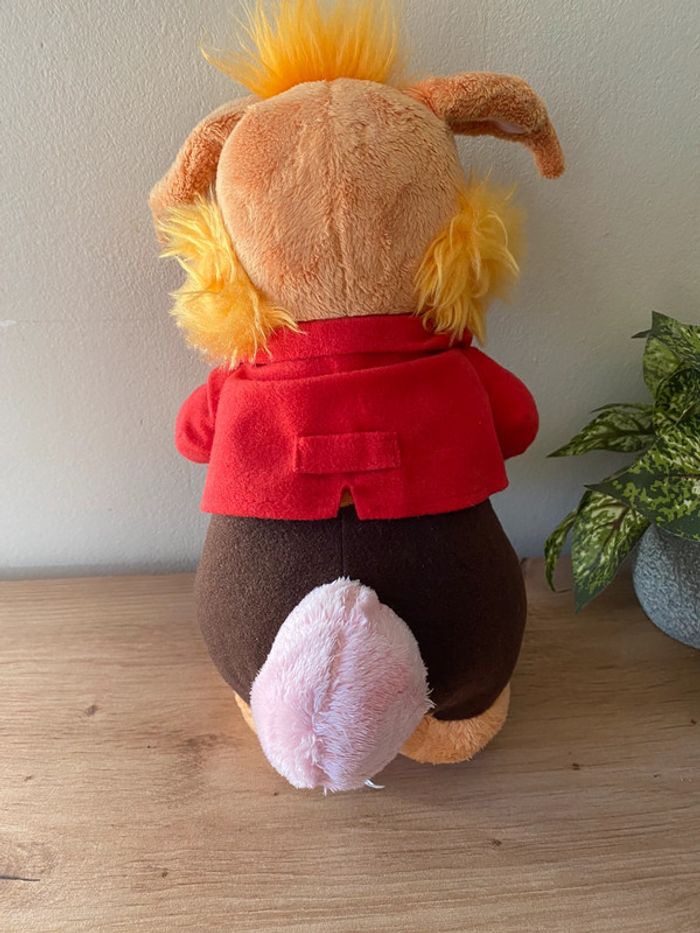 Doudou peluche lapin onesime marron veste rouge bandai - photo numéro 2