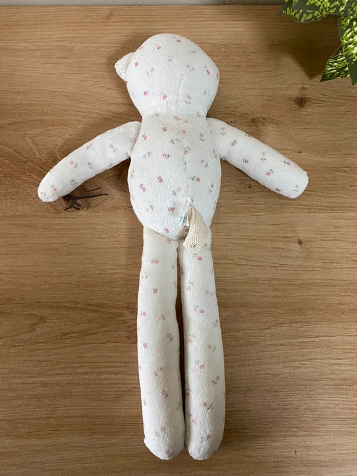 Doudou peluche chat blanc motifs fleurs boutchou - photo numéro 3