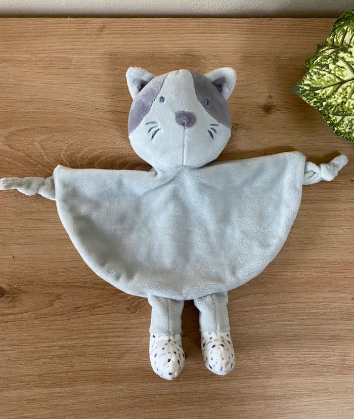 Doudou plat chat grelot gris blanc étoile tom kiddy bisous d ange - photo numéro 1