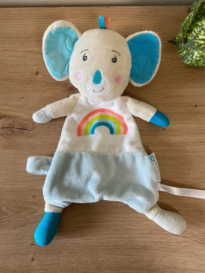 Doudou plat koala Bleu Blanc arc en ciel attache  sucette bébé confort - photo numéro 1