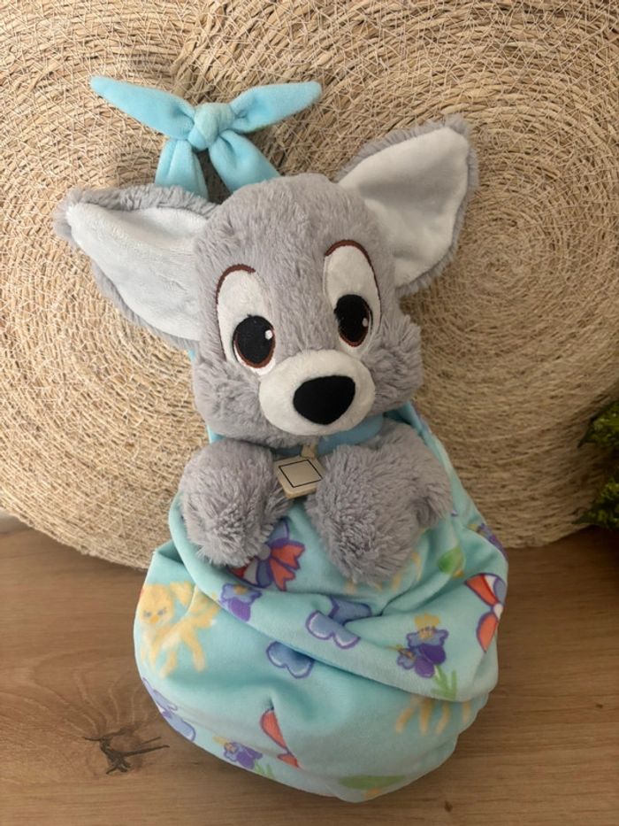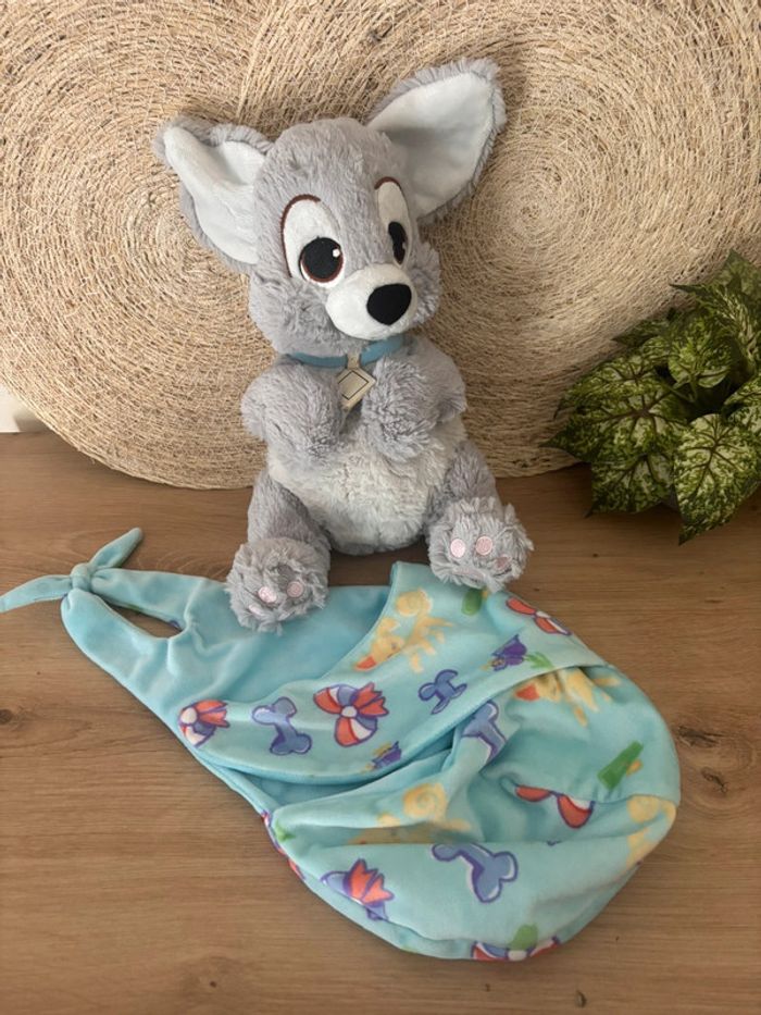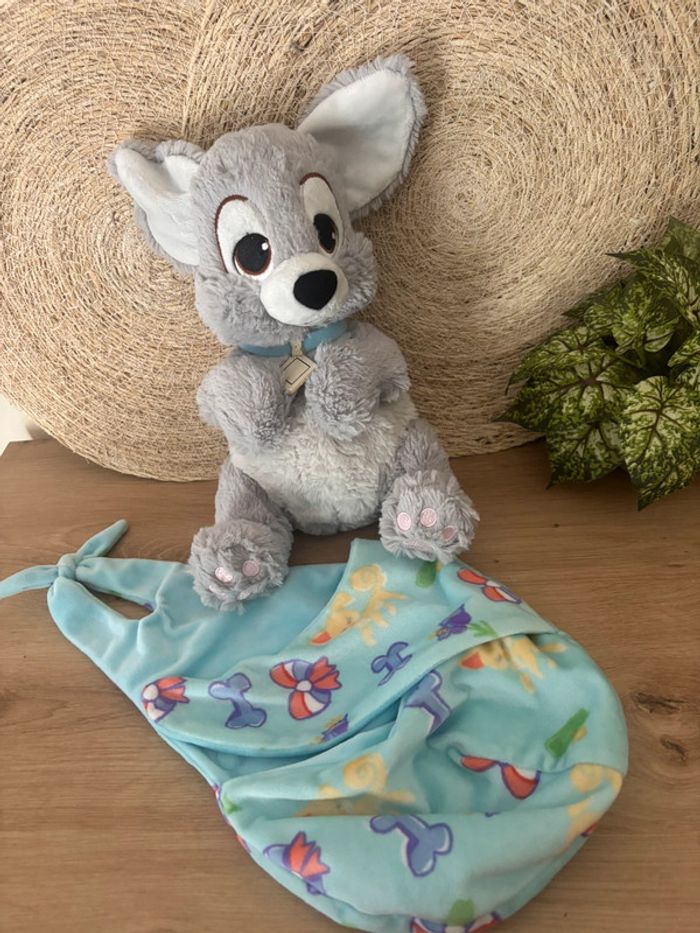 Doudou chien gris belle et le clochard baluchon bleu  Disney - photo numéro 1