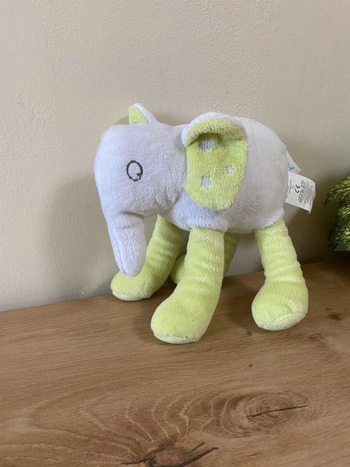 Doudou peluche éléphant blanc vert coeur brodé grain de blé - photo numéro 1