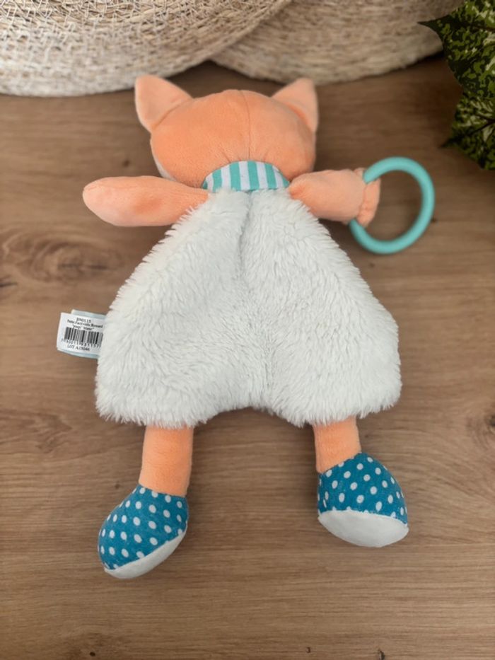 Doudou renard poupi blanc orange bleu anneau baby nat - photo numéro 2