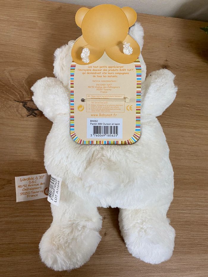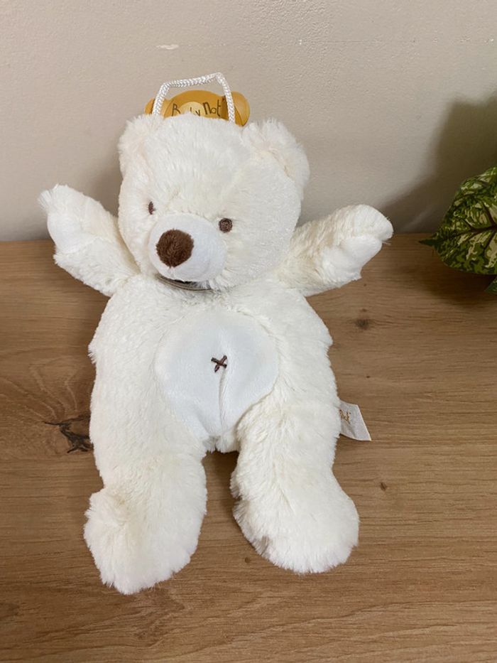 Doudou peluche ours blanc fourrure croix nombril baby nat neuf - photo numéro 2