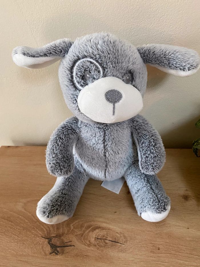 Doudou peluche chien Cocard gris bleu blanc tom kiddy bisous d ange