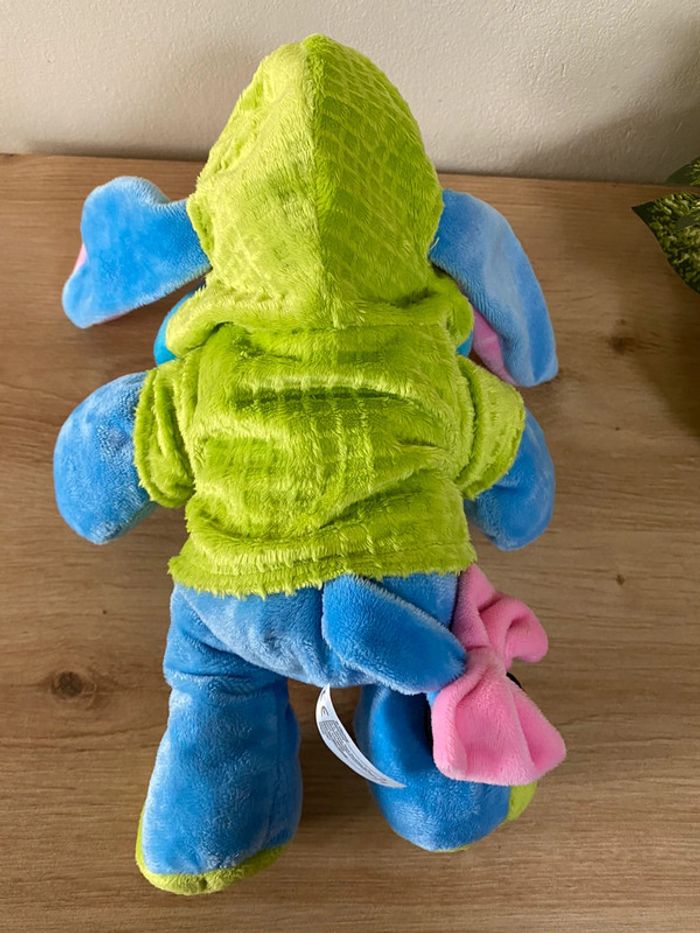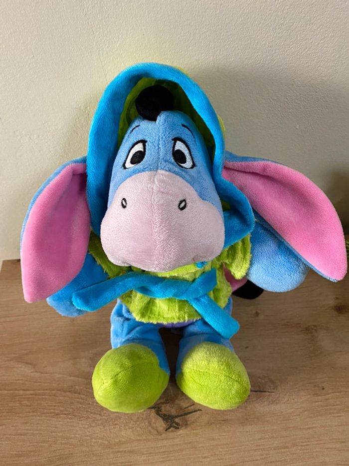 Doudou peluche âne bourriquet robe de chambre vert bleu Disney nicotoy