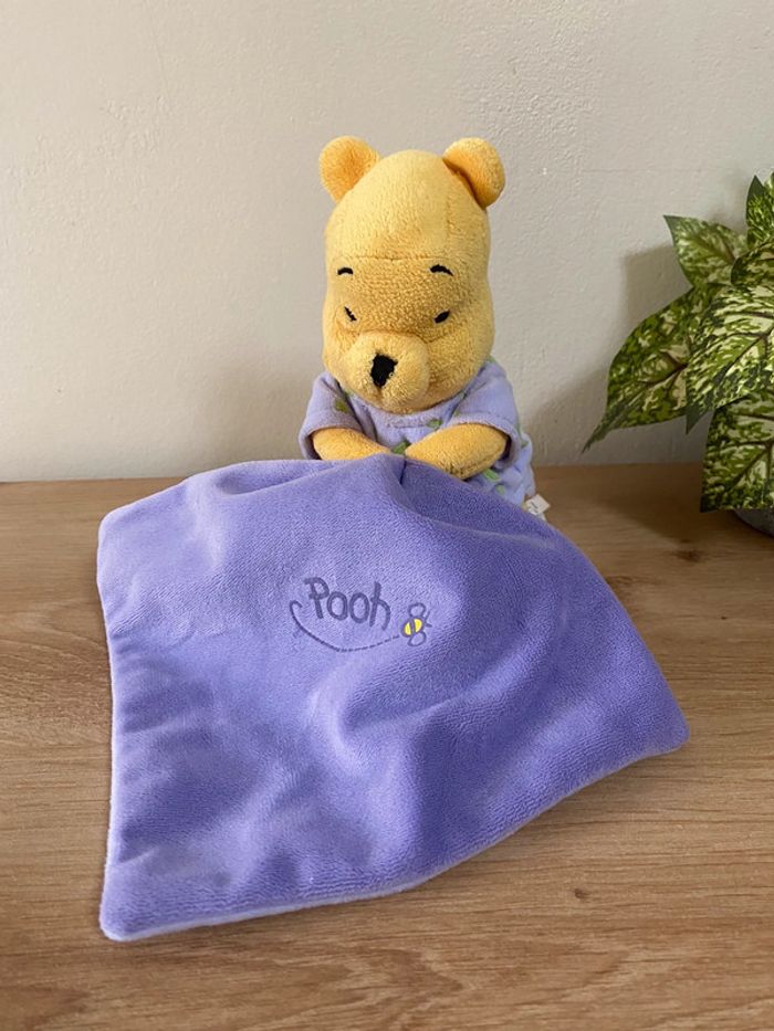 Doudou peluche Winnie the pooh mouchoir violet Disney nicotoy - photo numéro 1