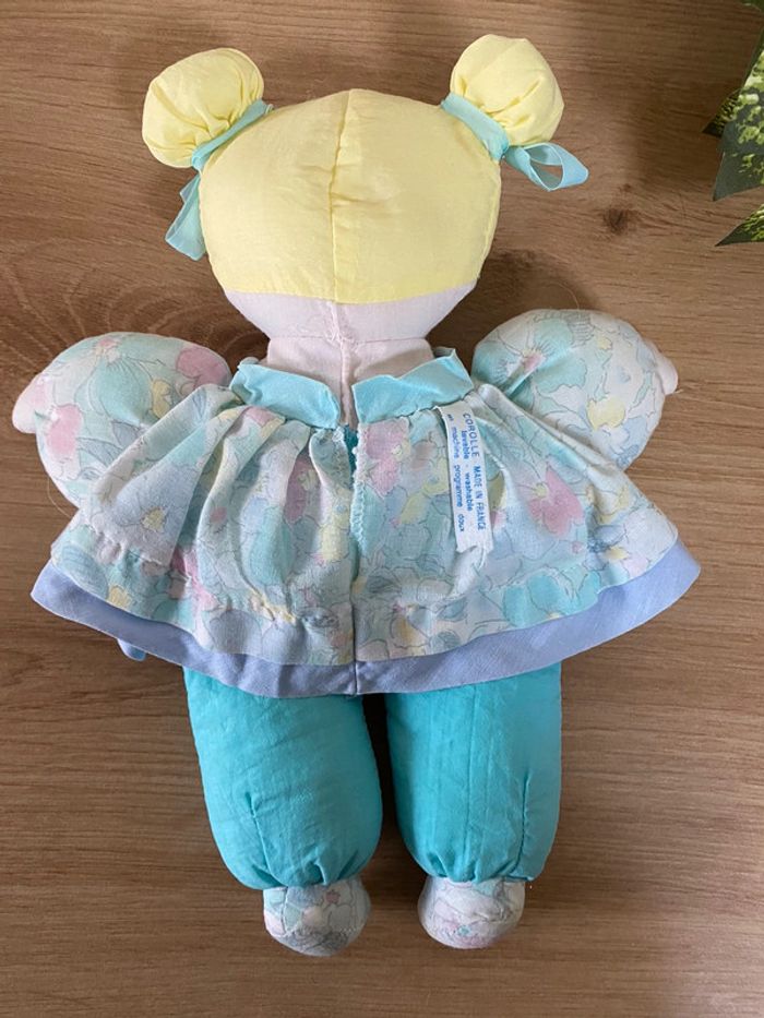Doudou peluche ancienne poupée tissu robe fleurs corolle - photo numéro 3