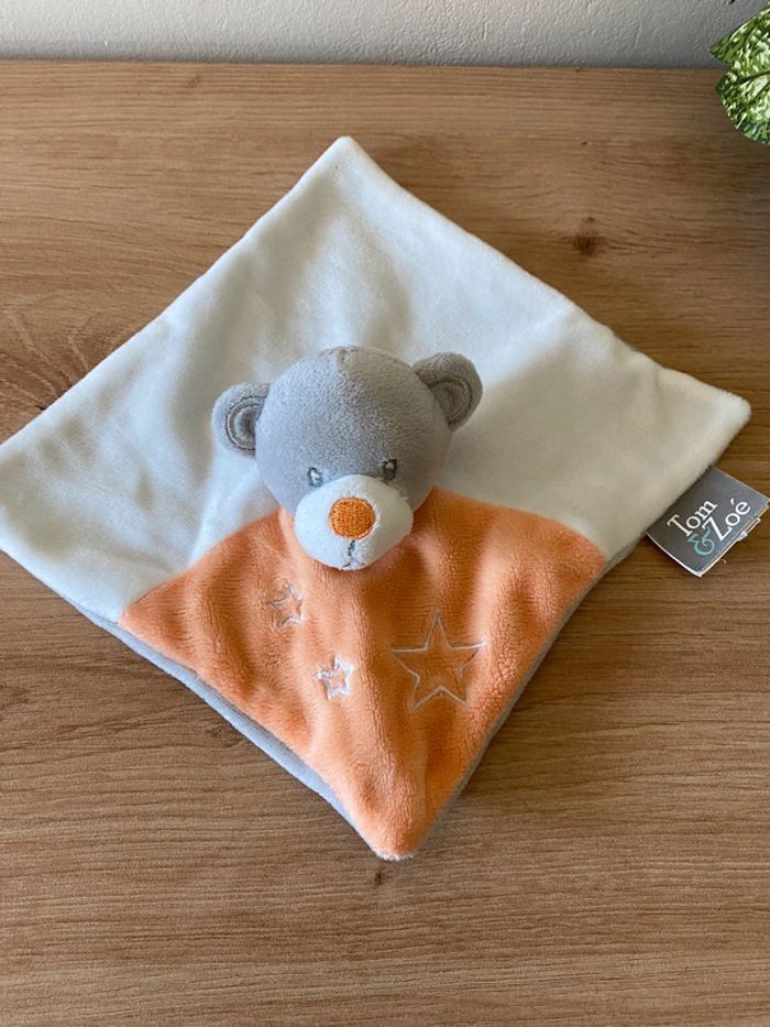 Doudou plat ours blanc saumon gris etoile tom & zoe - photo numéro 1